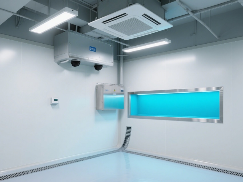 空间布局兼顾功能性与规范性,各类设施接口配置充足,圆弧墙角设计避免积尘,蓝色标识线清晰划分区域。整体工程通过温湿度精准控制、洁净环境打造与智能监控的协同,为电子、光学、精密制造等对环境敏感的产业提供了稳定可靠的生产空间,是保障产品品质与生产精度的关键支撑单元。