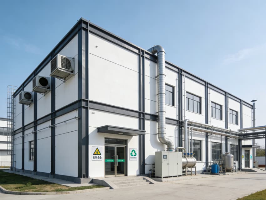本次呈现的微生物发酵车间融合多项专项施工工艺,采用耐腐蚀工业涂料喷涂工艺,搭配高气密性夹胶玻璃幕墙,接缝处采用三元乙丙密封胶双重密封,施工精度误差控制在2mm内,兼顾防腐防护与采光需求。