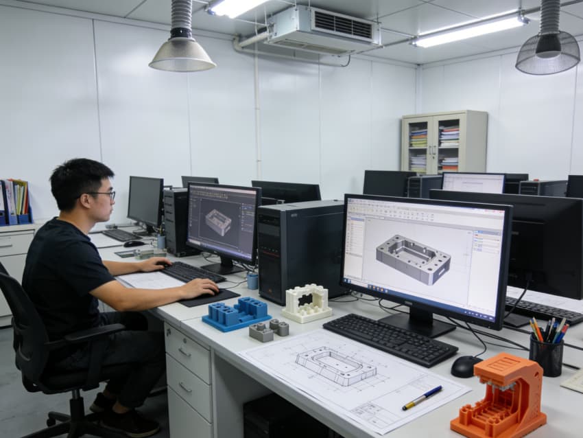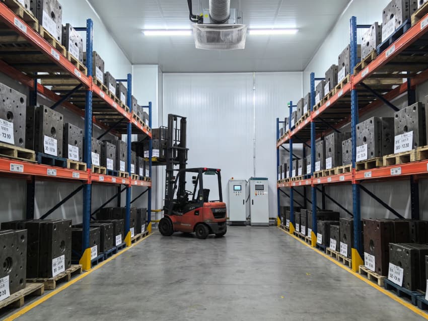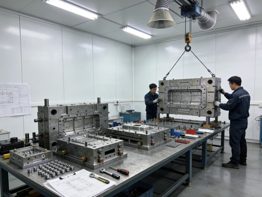 白色墙面采用工业级洁净涂层,无缝拼接搭配圆弧阴阳角设计,杜绝积尘死角,减少粉尘对模具精度的影响。车间划分加工区、检测区、调试区等功能区域,布局科学合理,加工区增设阻尼减震垫层降低设备振动干扰,检测区预留精密仪器安装位与恒温调控接口,各区域均配备标准化管线预埋与设备固定点位,全方位保障模具制造的精准性与稳定性。