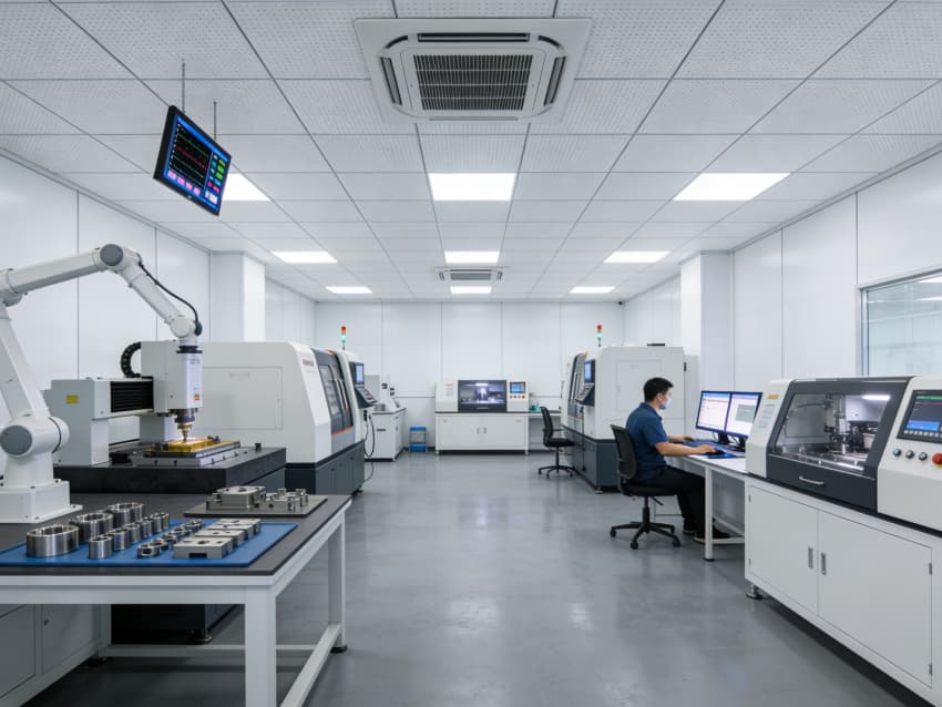 恒温恒湿车间内部采用灰色地面与白色墙壁的简约统一风格,精准匹配高端制造对环境稳定性、洁净度的严苛需求?;疑孛嫜∮媚湍タ咕驳缁费醪闹?,经多道精密施工工序处理,表面平整无接缝,兼具抗油污、易清洁特性,可耐受智能设备高频移动作业。白色墙面采用高洁净抗菌涂层,搭配密封式拼接与圆弧阴阳角设计,杜绝积尘死角,有效降低环境干扰。