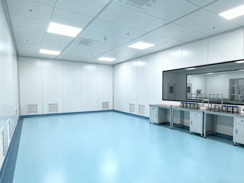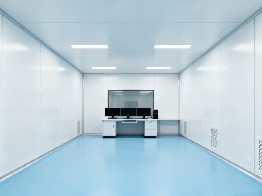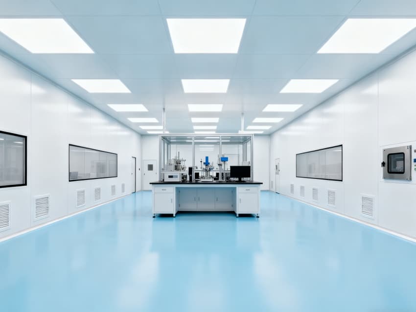 车间环境控制优势显著:地面采用浅蓝色防静电环氧材质,有效规避静电对量子元件的干扰;四周白色抗菌墙面经特殊涂层处理,粉尘附着率低于0.1%,配合全密封吊顶设计,可维持千级洁净度,满足量子器件对微环境的极高要求。?