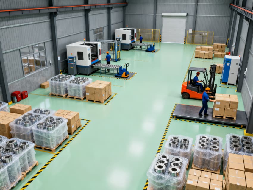 全车间统一预留标准化电源接口、压缩空气管路及 coolant 回收通道,层高5米适配各类大型CNC设备安装调试。地面隐形标识清晰划分加工区、通道区及安全区域,墙面张贴设备操作规范预留位。整体设计兼顾实用性与安全性,为精密CNC加工提供稳定、高效的生产环境,助力保障零件加工精度与生产效率。