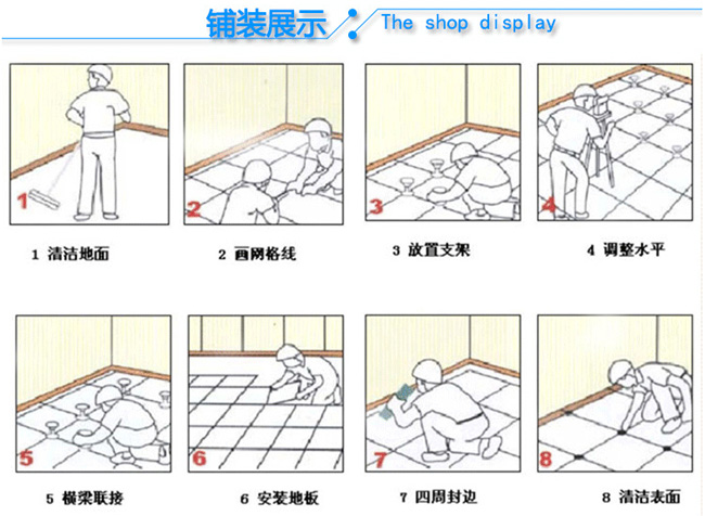 全钢陶瓷防静电地板系统有地板、横梁、支座组成。横梁和自身高度可调的支座用螺钉连结成稳固的下部支承系统,地板镶嵌入横梁围成的方格内。