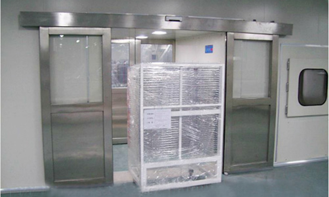 货淋室是物料进入洁净室所必需的通道,它可以减少物料进出洁净室所带来的污染问题。当物料进入货淋室后,高速洁净气流经高效过滤器过滤后由可旋转喷嘴从各个方向喷射至物料身上,有效而迅速清物料所携带的尘埃粒子。
