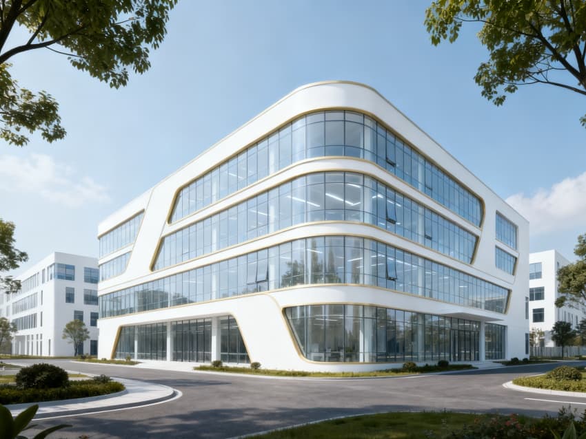 本项目为安徽美妆产业升级核心载体,聚焦护肤品、彩妆等产品生产需求,兼顾化妆品GMP洁净标准与江淮地区防潮防霉要求。外立面采用浅白节能幕墙+通透玻璃设计,契合安徽产业园区清新简约风格,同时阻隔外部粉尘与湿气,保障内部洁净环境稳定。?