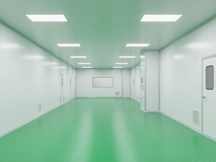 内部洁净室以绿色防滑防污地面、白色抗菌墙壁为基础,按生产流程划分功能区:从正面视角可见核心配制区,预留6米柱距适配乳化罐、搅拌设备;侧面视角呈现物料暂存区,设密封储物柜避免原料污染;背面视角为灌装预留区,保留自动化设备安装空间;左侧视角衔接质检区,预留微生物检测台位置;右侧视角为包装过渡区,规划传送带安装通道;对角视角展现人员洁净区,设风淋室与更衣间控制污染。整体空旷布局兼顾设备灵活摆放与合规要求,为安徽化妆品企业提供从原料配制到成品包装的一体化洁净空间,助力产业高质量发展。