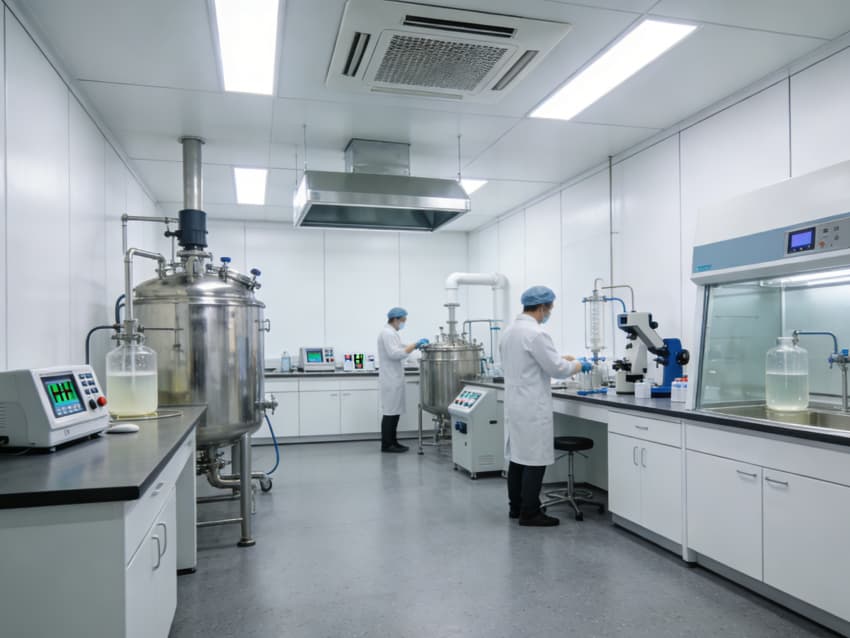 白色墙面采用食品级洁净抗菌涂层,推行无缝拼接工艺,阴阳角圆弧倒角设计消除清洁死角,洁净度可达Class 7级标准。车间科学划分抗体表达区、偶联反应区、纯化区等功能区域,各区域配备独立层流净化与负压防护系统,偶联区预留精密温控与惰性气体接口,纯化区设置无菌物料传递窗口,全方位规避交叉污染,保障研发生产的安全性与合规性。