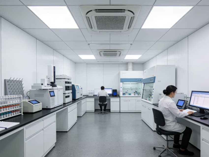 ADC医药研发生产车间内部采用灰色地面与白色墙壁的简约统一风格,严格遵循GMP高级别洁净规范,精准匹配抗体偶联药物研发生产的无菌、低污染严苛需求?;疑孛嫜∮靡接眉犊咕费踝粤髌讲闹?,经多道精密工序处理,表面平整无缝隙,具备强效抗菌、抗化学腐蚀特性,可耐受高频次消杀作业,杜绝微生物滋生与物料残留污染。