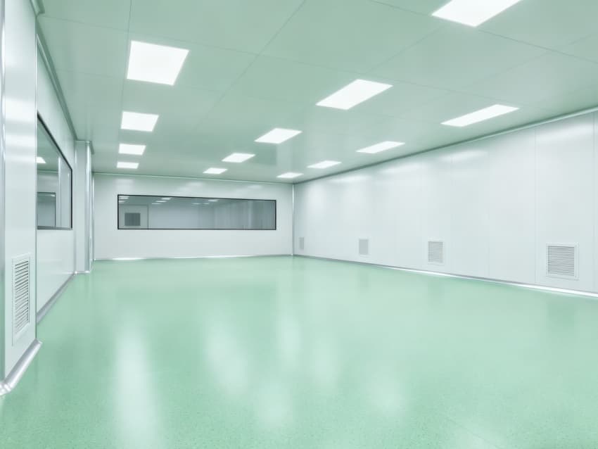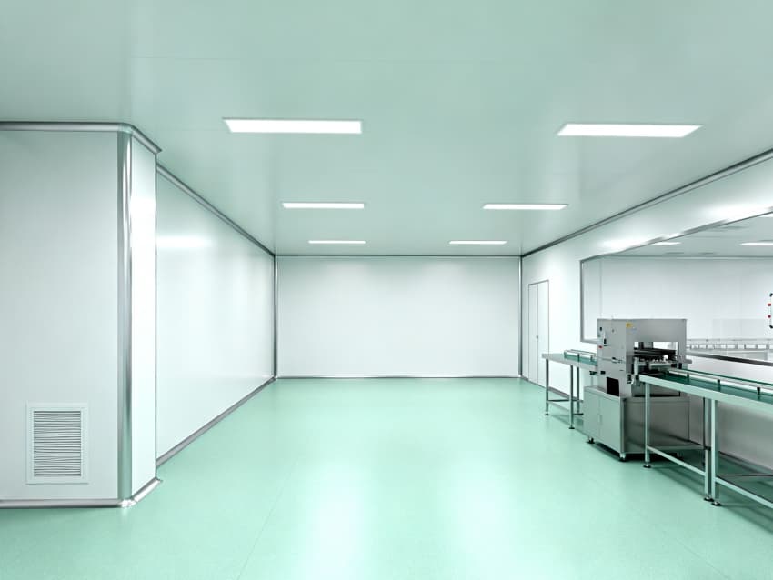 内部生产车间以浅绿色防滑防污地面、白色抗菌墙壁为基础,按不同视角呈现功能分区:正面视角为核心生产区,预留8米柱距,适配注塑机、精密组装设备;侧面视角为无菌操作预留区,可快速升级至万级洁净标准,满足植入类器械生产;背面视角为物料净化区,设双层传递窗,避免原料污染;左右侧视角分别为质检区与包装区,前者预留检测仪器平台,后者规划自动化包装动线;45度角视角展现人员洁净通道,含风淋室、更衣间,严格控制人员带入污染物。整体空旷布局兼顾设备灵活摆放与合规要求,为医疗器械生产提供安全、高效的专业化空间。